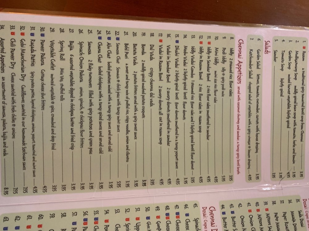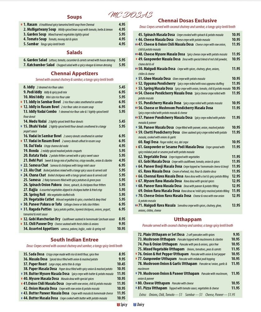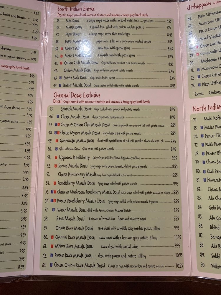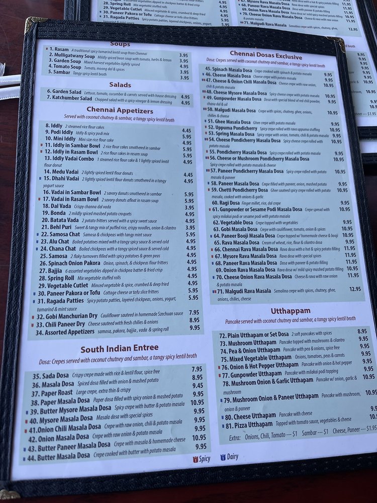 Chennai Dosas Menu (Update 2025)